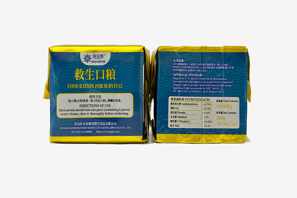 救生口粮是在海上遇难时的必需品,配备于救生筏、救生艇和(半)充气救援艇。