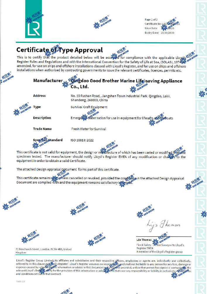 救生饮用水LR证书